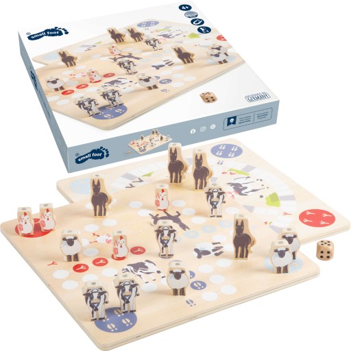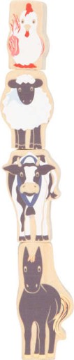 Zestaw 4 gier dla dzieci to niekończąca się zabawa w towarzystwie zwierzątek. Elementy są drewniane i łączą się za pomocą magnesików. Plansze umożliwiają zagranie w 1 z 4 gier; chińczyka, drabiny, wyścig i wieża.