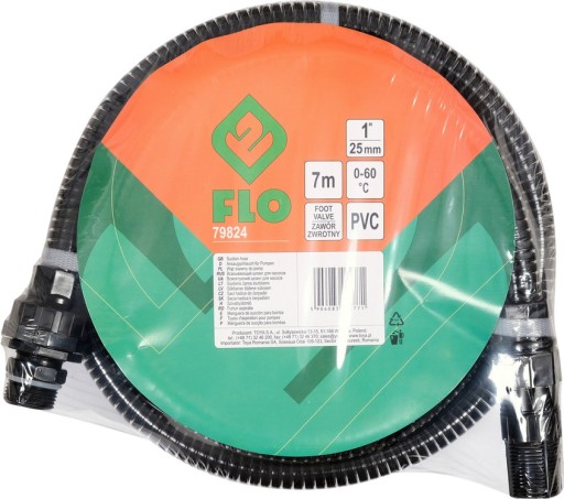 Elastyczny wąż ssący do pomp i hydroforów z zaworem zwrotnym i koszem zabezpieczającym przed zanieczyszczeniami.