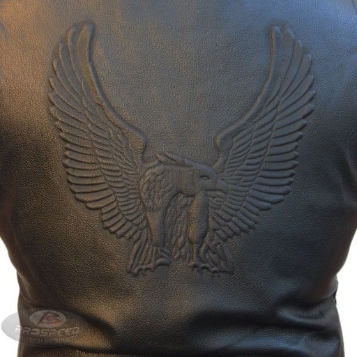Kamizelka Motocyklowa Skórzana zapinana na napy z motywem orła na plecach