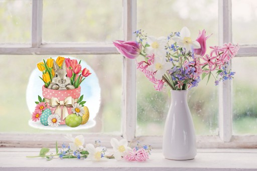 НАКЛЕЙКА НА ПАСХАЛЬНОЕ ОКНО ЖИВОЙ ЗАЙЧИК 07