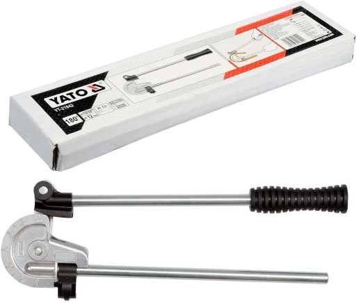Giętarka do rur o średnicy 12mm. Umożliwia wyginanie rur pod kątem 180° bez ich zgniecenia. Na korpusie wytłoczone są kąty pozwalające określić stopień wygięcia. Zamek polepsza mocowanie rur i umożliwia gięcie nawet krótkich odcinków. Pozwala na wyginanie rur wykonanych z: miękkiej miedzi, aluminium, miękkiej stali.
