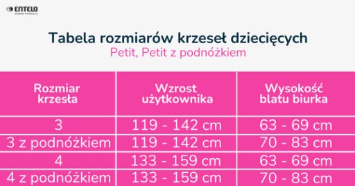 Model Petit z podnóżkiem dopasowany do biurek o wysokości 70-82 cm.