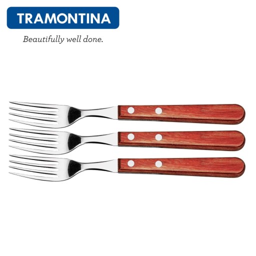 Tramontina wykorzystuje najbardziej zaawansowane technologie do produkcji drewnianych uchwytów z Polywood'u do sztućców i innych przyborów kuchennych. Drewniane rączki mają znacznie wydłużoną żywotność i wyglądają świetnie nawet po latach. Są to jedyne drewniane sztućce, które mogą być bezpiecznie myte w zmywarce.