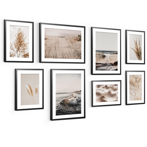 KOMPLET ZESTAW plakaty w ramach Obrazy 8szt Piasek Morze do salonu sypialni