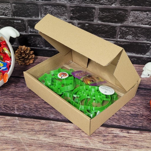 Świetny pomysł! 🎁 Każda paczka jest starannie zapakowana z dbałością o każdy detal i ozdobiona kolorową naklejką nawiązującą do tematyki foremek. W środku znajduje się słodki upominek. 🍭