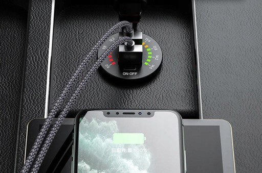Wysokiej jakości ładowarka samochodowa z woltomierzem. Wyposażona w dwa porty USB i USB-C