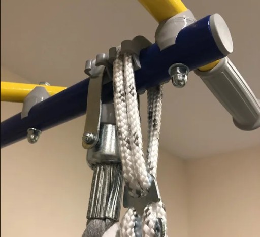 Montaż drabinki jest wyjątkowo prosty, gdyż dostarczana jest ona w formie już częściowo złożonej - dwie półdrabinki wymagają jedynie nałożenia na siebie. Zestaw gimnastyczny z mocowaniem przyściennym daje możliwość zamontowania drabinki w narożniku, Uchwyty mocujące do ściany można ustawić na dowolnej wysokości oraz pod dowolnym kątem. Pozwala to ominąć ewentualne przeszkody do zamontowania drabinki w wybranym przez nas miejscu.