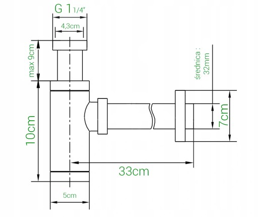 Syfon pasuje do do większości umywalek dostępnych na rynku. Na zdjęciach w galerii rysunek techniczny.