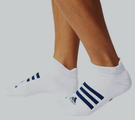Skarpety tenisowe ADIDAS stworzone do uprawiania sportu. Całe w kolorze białym z granatowymi dodatkami. Wykonane w technologii CLIMALITE - zapewniają odprowadzenie potu na zewnątrz, dają poczucie świeżości i komfortu.