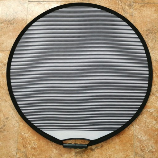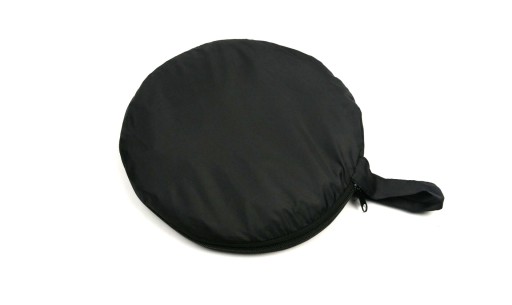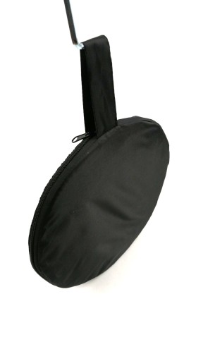 Blenda wykonana z materiału posiada metalową obwódkę, dzięki czemu bez problemu można ją złożyć i spakować do pokrowca, będącego częścią zestawu.