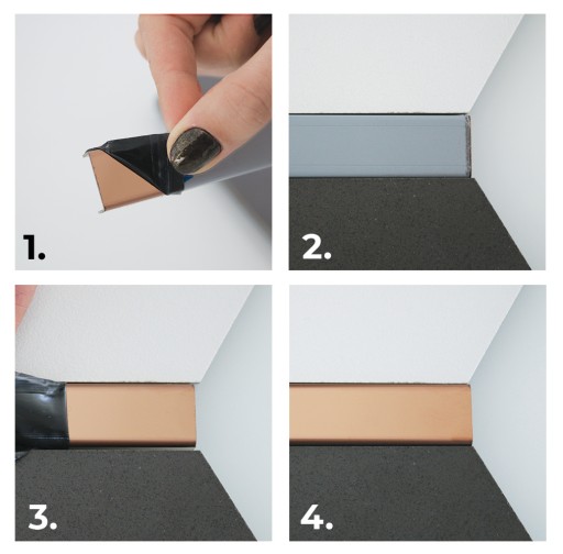 - Przed przystąpieniem do montażu sprawdź czy produkt ma pożądany kolor poprzez delikatne podwinięcie szarej folii ochronnej. Nie zdejmuj całej folii. Po upewnieniu się, że kolor jest prawidłowy - przyklej folię z powrotem.