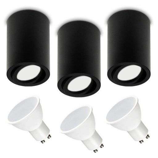 Oprawy oświetleniowe natynkowe, możemy wykorzystać praktycznie w każdym typu pomieszczenia. W naszym domu idealnie sprawdzą się jako oświetlenie kuchni, ciągu komunikacyjnego, korytarza, wiatrołapu czy pokoju. Możemy je z powodzeniem zastosować do oświetlenia naszego biura, gabinetu. Oprawy posiadają prosty, nowoczesny design. W naszej ofercie dostępne są w dwóch wersjach kolorystycznych: białej lub czarnej. Dużym atutem tych opraw jest prosty sposób montażu, brak konieczności stosowania urządzenia zasilającego (np. zasilacz), gdyż podłączamy je bezpośrednio do zasilania 220V – 240V. W oprawach stosujemy klasyczne żarówki z trzonkiem GU10, o średnicy 5cm. Na tej aukcji kupują Państwo zestaw 3 opraw wraz z żarówkami o mocy 7W (odpowiednik żarówki 50W-55W).