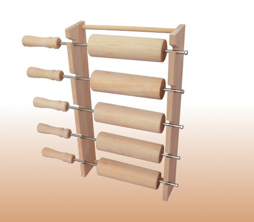 W cenie: 12 wałków drewnianych, 2 wieszaki drewniane na wałki,