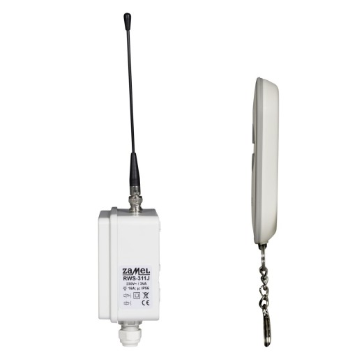Radiowy wyłącznik sieciowy RWS-311J/Z przeznaczony jest do zdalnego ( drogą radiową ) sterowania wszelkiego rodzaju urządzeniami elektrycznymi takimi jak: silniki, lampy, napędy bram, pompy, oświetlenie ogrodowe itp. Urządzenie działa w oparciu o protokół zgodny z bezprzewodowym systemem exta free i współpracuje z nadajnikami tego systemu. Do transmisji pomiędzy nadajnikiem a odbiornikiem wykorzystano fale radiowe o częstotliwości 868,32 MHz. Odbiornik posiada hermetyczną obudowę (IP56), dlatego może być montowany na zewnątrz pomieszczeń i może pracować w trudnych warunkach atmosferycznych. Wyłącznik RWS-311J/Z zasilany jest bezpośrednio z sieci 230 V AC. Posiada jedno wyjście przekaźnikowe o układzie styków 1 x NO. Obciążalność styku przekaźnika to 16 A / 250 V AC 4000 VA AC1. Korzystając z RWS-311J/Z można niezależnie sterować jednym obwodem elektrycznym. Współpraca z bezprzewodowym systemem exta free daje bardzo duże możliwości sterowania. Przykładowo po zastosowaniu kontrolerów EFC-02 Mini można sterować wyłącznikiem z poziomu urządzeń mobilnych (tablety,smartfony) oraz automatyzować pewne procesy sterowania. W przypadku zestawu RWS-311J/Z w komplecie z wyłącznikiem znajduje się pilot 2-przyciskowy P-257/2. Do odbiornika można przypisać także inne nadajniki (maksymalnie 23).