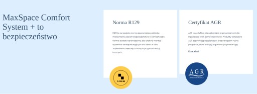 1. Posiada normę R129/03 i został uznany przez Niemieckie stowarzyszenie na rzecz zdrowych pleców, Aktion Gesunder Rücken (AGR)