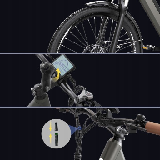 Elektryczny rower miejski Fafrees F26 Pro to elegancka i wygodna opcja dla osób szukających płynnej i efektywnej jazdy. Dzięki tylnemu silnikowi o mocy 250 W i wytrzymałemu akumulatorowi litowo-jonowemu o mocy 360 W napędza Twoje przejażdżki w najwyższym stylu… i jest wyposażony we wszystko, od 7-biegowego układu napędowego Shimano, przez hamulce tarczowe, po imponujący system zawieszenia zapewniający płynniejszą i bezpieczniejszą jazdę . Masz również wygodny wyświetlacz LCD ze sterowaniem z aplikacji, który pozwala z łatwością śledzić prędkość, dystans i czas pracy na baterii… oraz konstrukcję ramy, która ułatwia wsiadanie i zsiadanie.