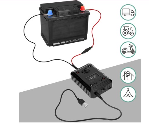 - Prosta i szybka instalacja, łatwa obsługa - jest to urządzenie typu „podłącz i zapomnij”. Urządzenie włącza się automatycznie po wyłączeniu silnika, a wyłącza po jego uruchomieniu.