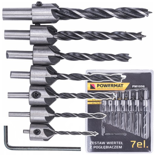 - 7 wierteł z pogłębiaczami