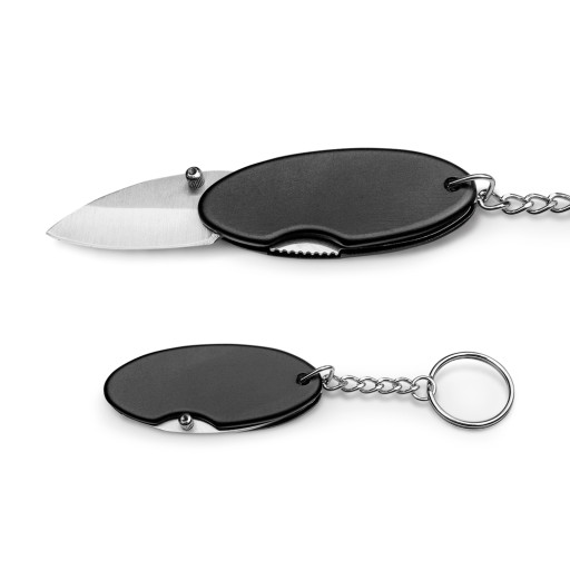 Miniscyzoryk ze stali nierdzewnej i metalu. Z biezpiecznikiem i brelokiem. 63 x 7 x 27 mm