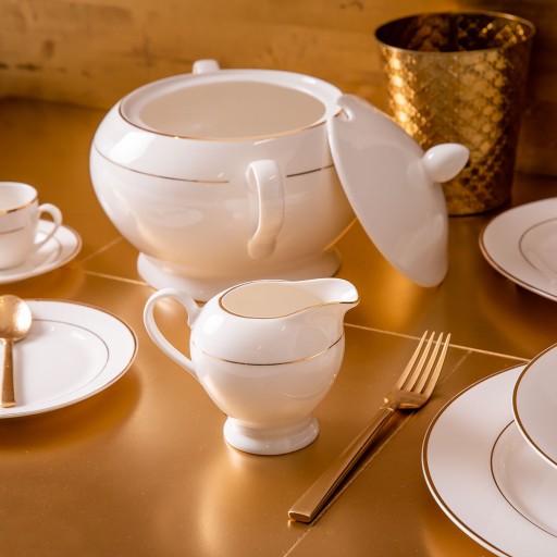 Wyjątkowo elegancka linia porcelany, ozdobiona delikatnymi złotymi liniami. Klasyczny kształt i subtelna dekoracja sprawiają, że doskonale będzie współgrać zarówno we wnętrzach tradycyjnych, jak i nowoczesnych. Niepowtarzalna porcelana New Bone China prezentuje się bardzo ekskluzywnie, nadając każdemu wnętrzu wyjątkowego charakteru.