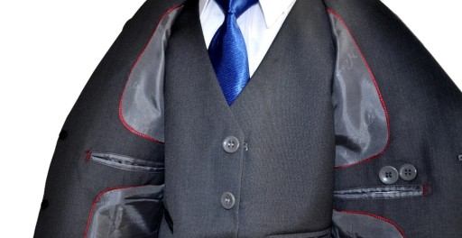 Wszystkie garniturki mają eleganckie obszycia od srodka, co dodaje elegancji i nowoczesnego, sportowego stylu. W środku ozdobne kieszonki
