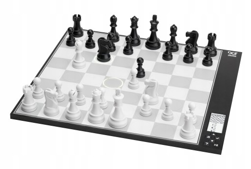 DGT Centaur to wyjątkowy komputer szachowy z pięknie zaprojektowaną szachownicą z czujnikami dotykowymi, które bez trudu rejestrują ruchy, wyposażony jest także w akumulator, wyświetlacz e-Papier, i obciążone figury szachowe a jego menu posiada intuicyjne ustawienia w wielu językach.