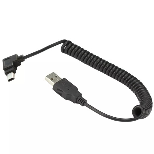Kabel kątowy Spiralny USB - MiniUSB do synchronizacji, przesyłania danych i ładowania urządzeń z gniazdem Mini USB o długości 10-150cm PRAWY.