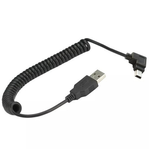 Kabel kątowy Spiralny USB - MiniUSB do synchronizacji, przesyłania danych i ładowania urządzeń z gniazdem Mini USB o długości 10-150cm LEWY.