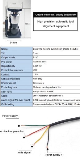 Przedmiotem ogłoszenia jest czujnik wysokości narzędzia do maszyn cnc ploterów frezujących.