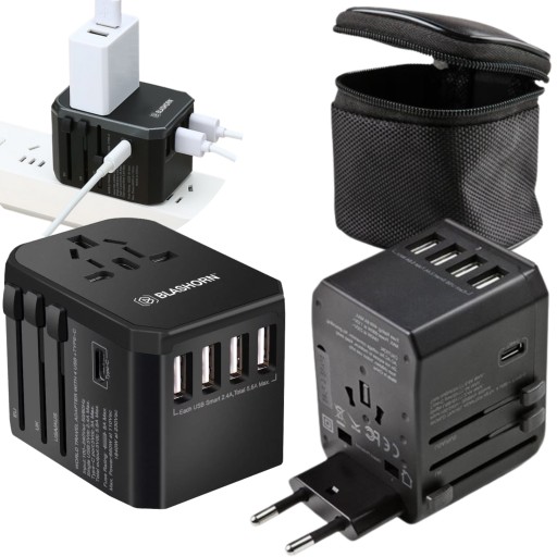 - ✅Wbudowane 4 gniazda USB oraz USB C, pozwalają ładować jednocześnie aż 5 różnorodnych urządzeń na raz takich jak Smartphone, Power Bank, Tablet, PDA, iPod, MP3, Aparat prawie na całym świecie. Całkowita moc wynosi max. 5.6A.