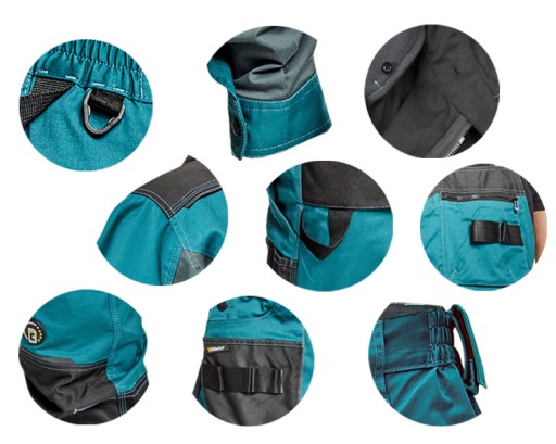 - system elastycznego pasa, który zapewnia doskonałe dopasowanie spodni niezależnie od pozycji w jakiej wykonywana jest praca