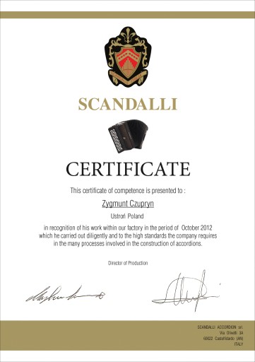Szanowni Państwo, nazywam się Zygmunt Czupryn i jestem wyłącznym autoryzowanym przedstawicielem i serwisem legendarnych akordeonów Scandalli w Polsce.