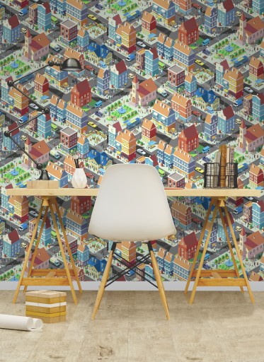 Разноцветный ГОРОД, Дома, Улицы, ОБОИ-флизелин-УГЕПА