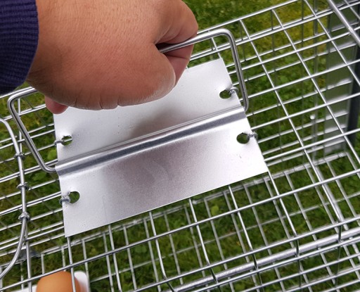 Uchwyt do przenoszenia - pułapka jest wyposażona standardowo w metalową osłonę ręki - to ważne gdy przenosi się złapane zwierzę - metalowa osłona ręki ochroni Cię przed ewentualnym atakiem zębami lub pazurami.