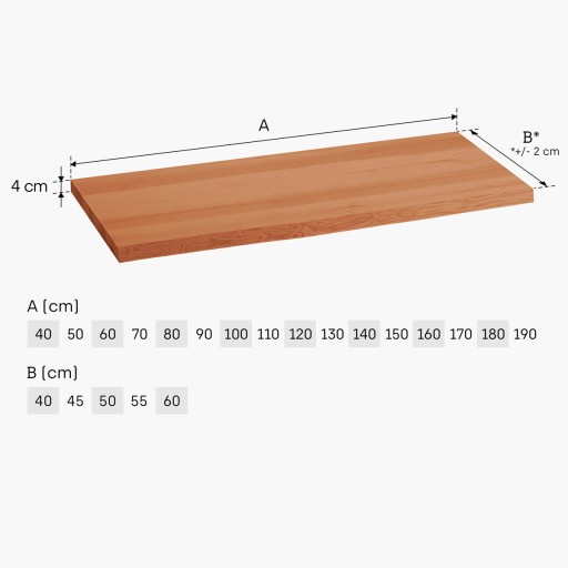 Blat marki LAMO Manufaktur jest wykonany z naturalnego drewna, które poddajemy sezonowaniu i suszeniu. Każdy egzemplarz jest jedyny w swoim rodzaju. Ze Względu na swoją grubość, która wynosi 4 cm, jest niezwykle wytrzymały.