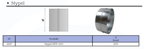 Nypel, łącznik do rur spiro Ø 200 MM