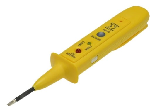 - Wykrywa przewody pod napięciem, fazy, zera, napięcia stałe (maksymalnie 60 V), przerwy w obwodach oraz zwarcia.