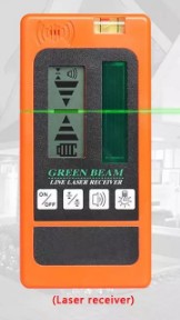 - Zielone diody laserowe, precyzyjne i wyraźne - linia poziomu 360° i dwie linie pionu 130° widoczne na ścianach, podłodze oraz suficie.