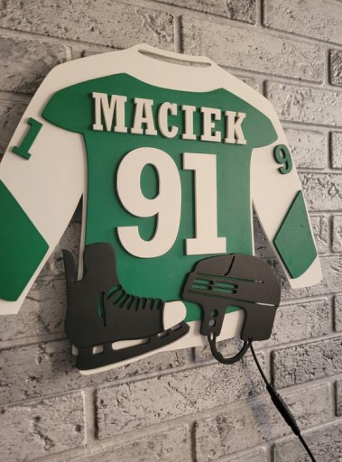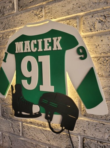 Personalizowana lampka nocna w kształcie koszulki hokeisty w barwach ukochanego klubu ;) to nie tylko praktyczny element wyposażenia pokoju malucha, ale także urocza dekoracja.