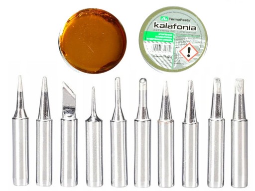 Zestaw sprawdzonych grotów do lutowania kolbą grotową. Groty są skompletowane pod względem przydatności w serwisie elektronicznym.
