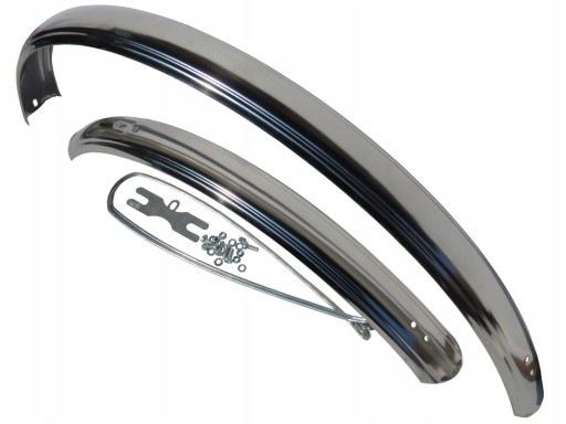 BŁOTNIKI ROWEROWE STALOWE CHROM DO ROWERU NA KOŁACH 26" ZE WSPORNIKAMI. ZAPEWNIAJĄ WYSOKĄ STABILNOŚĆ. BŁOTNIKI ZNAKOMICIE CHRONIĄ ROWERZYSTĘ ZAPEWNIAJĄC MU MAKSIMUM KOMFORTU I BEZPIECZEŃSTWA. BŁOTNIKI DOSKONALE PREZENTUJĄ SIĘ NA ROWERACH MIEJSKICH, RETRO. MONTAŻ ZA POMOCĄ ŚRUB. WAGA 900gr. SZEROKOŚCI 50mm POLSKI PRODUCENT. POSIADAJĄ CERTYFIKAT JAKOŚCI. CENA ZA KOMPLET PRZEDNI I TYLNY BŁOTNIK Z ZESTAWEM MONTAŻOWYM ZE WSPORNIKAMI.