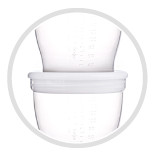 Przed ściągnięciem pokarmu wieczko pojemnika oznacz datą. Dziecku podawaj zawsze najpierw tę porcję, która ma najstarszą datę. UWAGA! Aby zachować sterylność nie dotykaj wnętrza pojemnika. Przed użyciem pojemników starannie umyj ręce. Wlej pokarm do otwartego pojemnika. Uważaj, aby nie przekroczyć linii pojemności 160 ml. Wkręć delikatnie wieczko zamykając pojemnik.