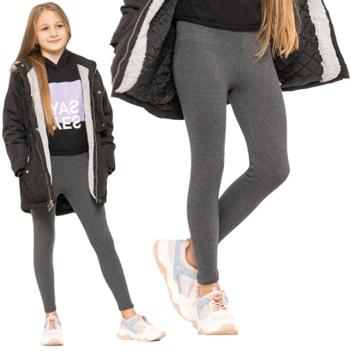 DZIEWCZĘCE LEGGINSY OCIEPLANE GETRY GRAFITOWE 140
