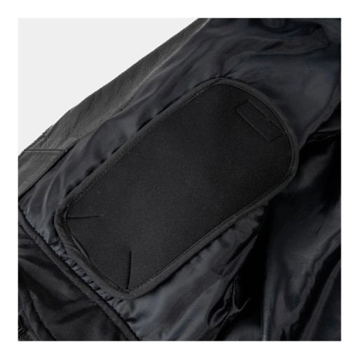Motocyklowa kurtka skórzana z ochraniaczami łokci i barków CE Level 1 gwarantuje pełną ochronę. Ma dodatkową kieszeń na plecach dającą możliwość dołożenia ochraniacza. Regulacja w pasie pozwala na precyzyjne dopasowanie do każdej sylwetki. Ma kieszenie zewnętrzne i jedną wewnętrzną.