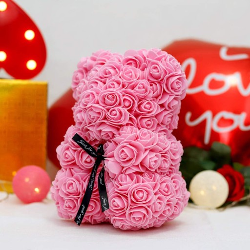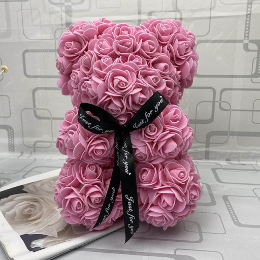 Najmodniejszy w ostatnim czasie prezent, który powstał z myślą o wyjątkowych okazjach. Miś jest pieczołowicie przygotowywany tak aby zaskoczyć najwyższą jakością i stać się luksusowym i ponadczasowy prezentem, dla każdej kobiety. Ten słodki miś wykonany został ze sztucznych, piankowych róż, dzięki czemu nie musisz martwić się o jego trwałość.