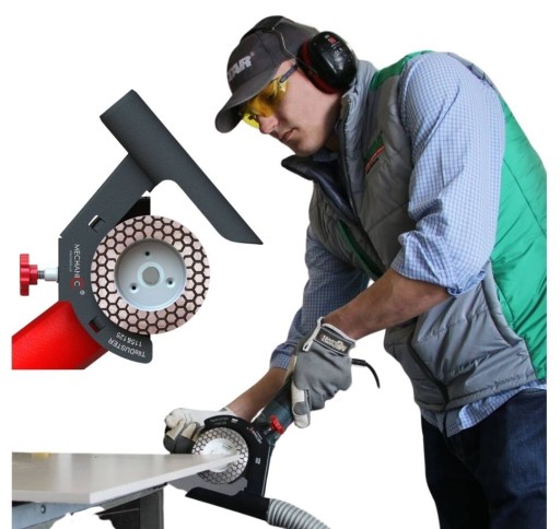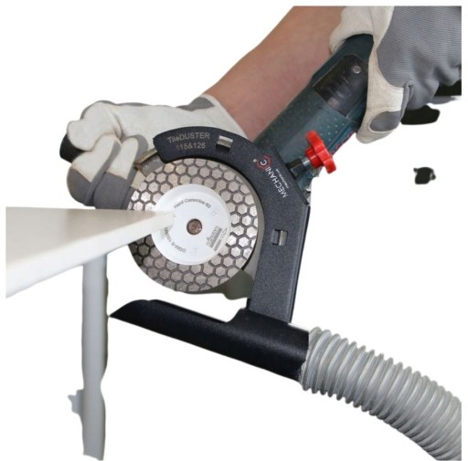 ✅Operacji szlifowania krawędzi płytek ceramicznych frezami diamentowymi na szlifierce kątowej zawsze towarzyszą znaczne ilości kurzu. Osłona do odprowadzania pyłu TileDUSTER zwalnia od tego problemu.