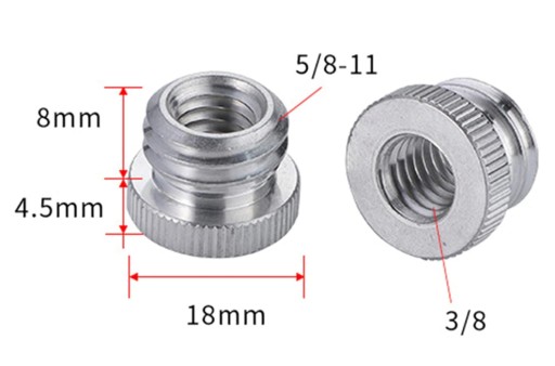Umożliwia nakręcenie na śrubę statywu 3/8" i mocowanie urządzeń z gwintem 5/8".
