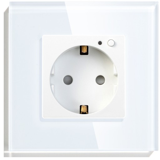 Zestaw gniazdka sterowanego wraz ze szkalną ramką , który po zastąpieniu tradycyjnego gniazdka umożliwi realizację inteligentnego sterowania urządzeniami oraz obsługi zdalnej na smartfonie przez najpopularniejszą aplikację inteligentnego domu- TUYA Smart Life .