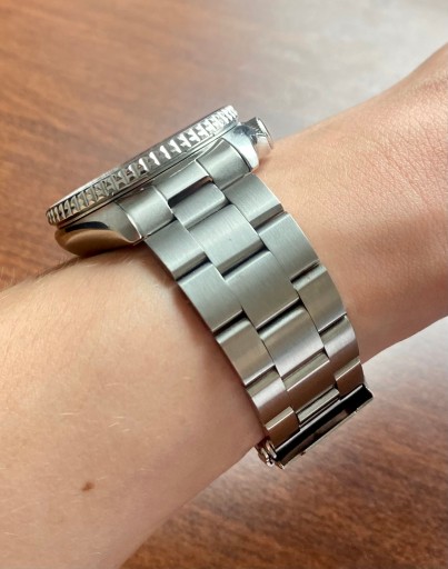 Bransoleta typu Oyster jest jedną z najbardziej uniwersalnych bransolet do zegarków. Jej płaskie ogniwa nadają eleganckiego charakteru zegarkowi. Doskonale skomponuję się z każdym rodzajem zegarka.