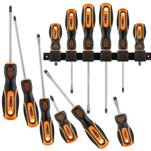 Zestaw wkrętaków NEO w nowej odsłonie. Wkrętaki charakteryzuje ergonomiczny kształt uchwytu z perforacją naśladującą linie papilarne oraz miejscem na kciuka. Na szczycie uchwytu znajduje się oznaczenie rozmiaru co ułatwia wybór wkrętaka do określonego zadania.